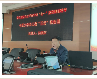 20级、21级全体学生在文萃校区知行楼八楼报告厅,共同参加了由宁夏大学关工委“五老”报告团成员陆美石老师主讲的《学习贯彻习近平总书记“七一”重要讲话精神》专题讲座。