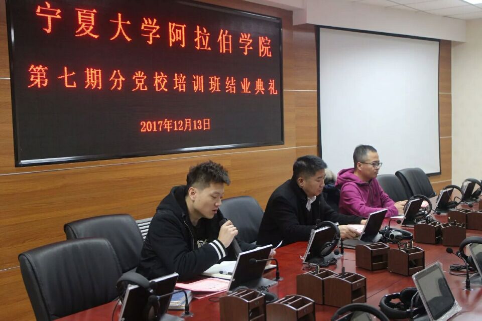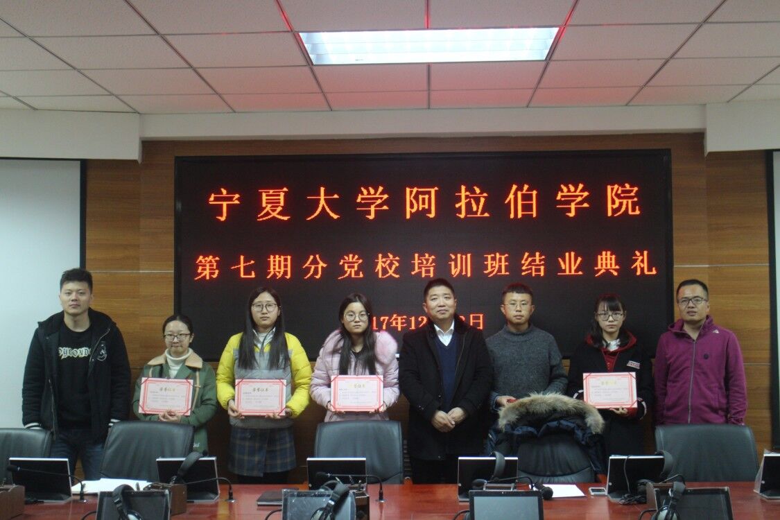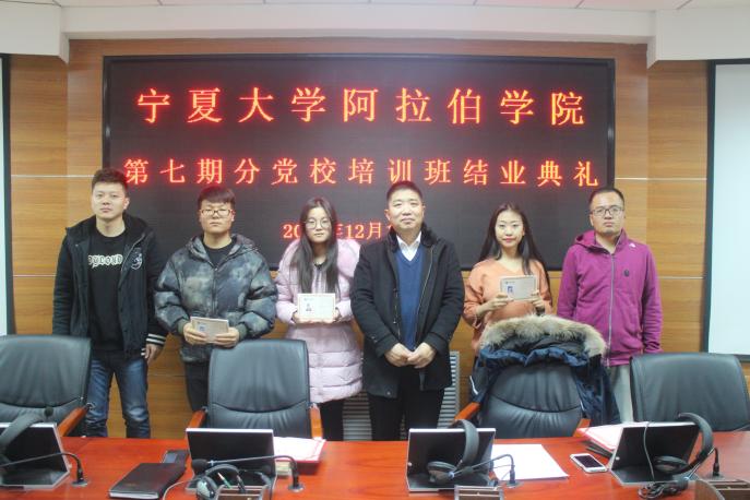 在学院报告厅举行分党校第七期入党积极分子党课培训班结业典礼,学院党总支副书记赵永军、学生工作办公室老师金宁洋和全体学员参加。