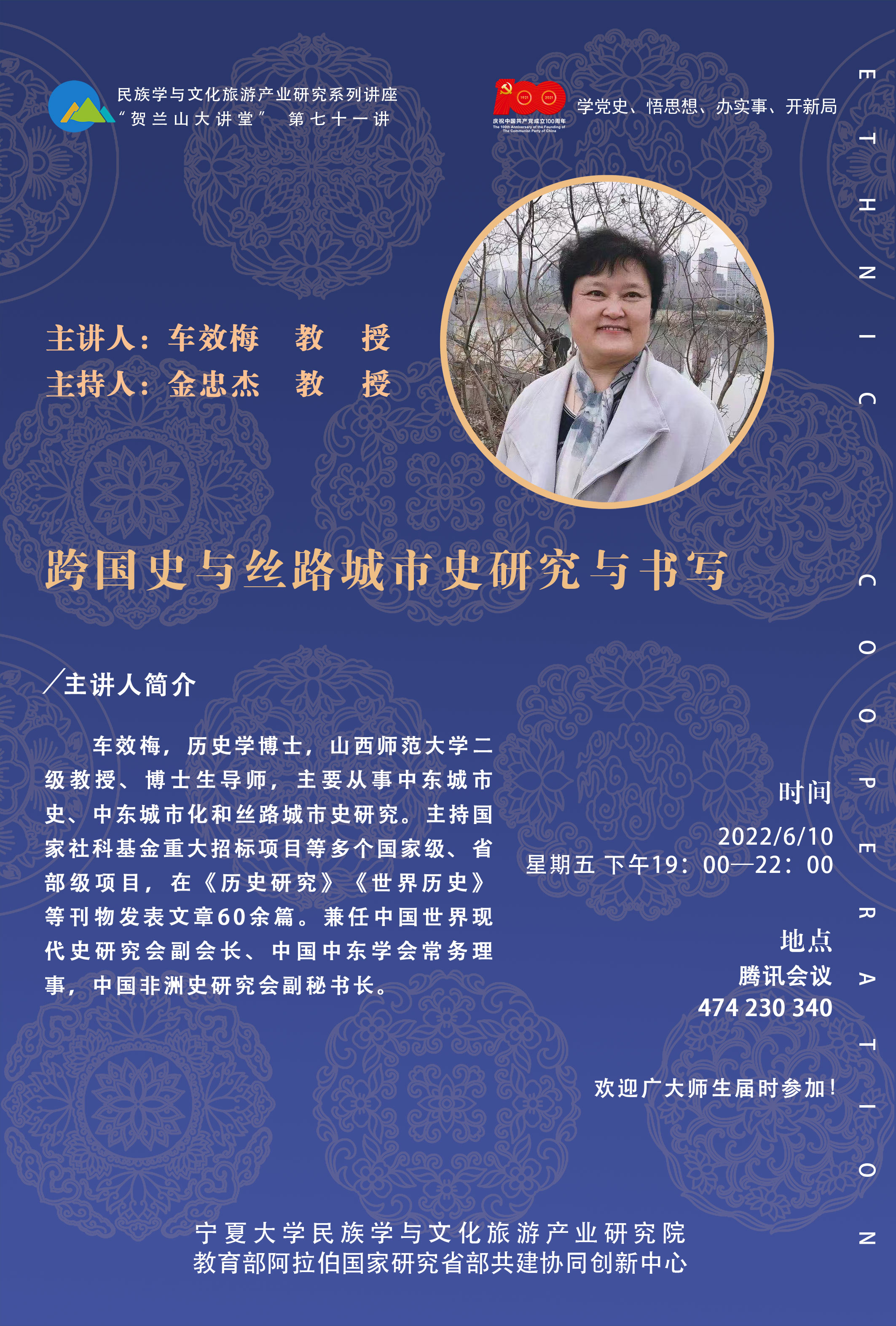 上一条:车效梅教授为黄金捕鱼场 (中国阿拉伯国家研究院)开展题为 “跨国史与丝路城市史研究与书写”的讲座 下一条:民族学与文化旅游产业研究系列讲座“贺兰山大讲堂”第七十讲