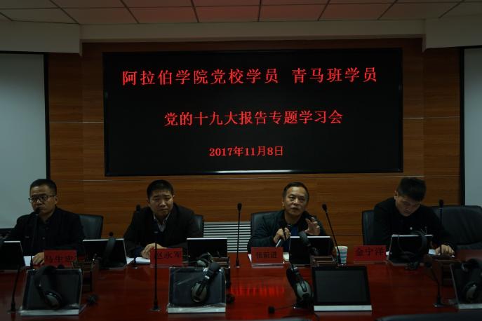 在学院报告厅召开党校学员、青马班学员党的十九大报告专题学习会。学院党总支书记张前进做了专题讲座。