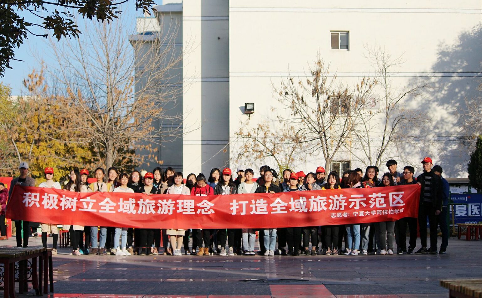 团委学生会组织学生于银川市西夏区文昌街道共享社区参加了“全域旅游”推广活动。