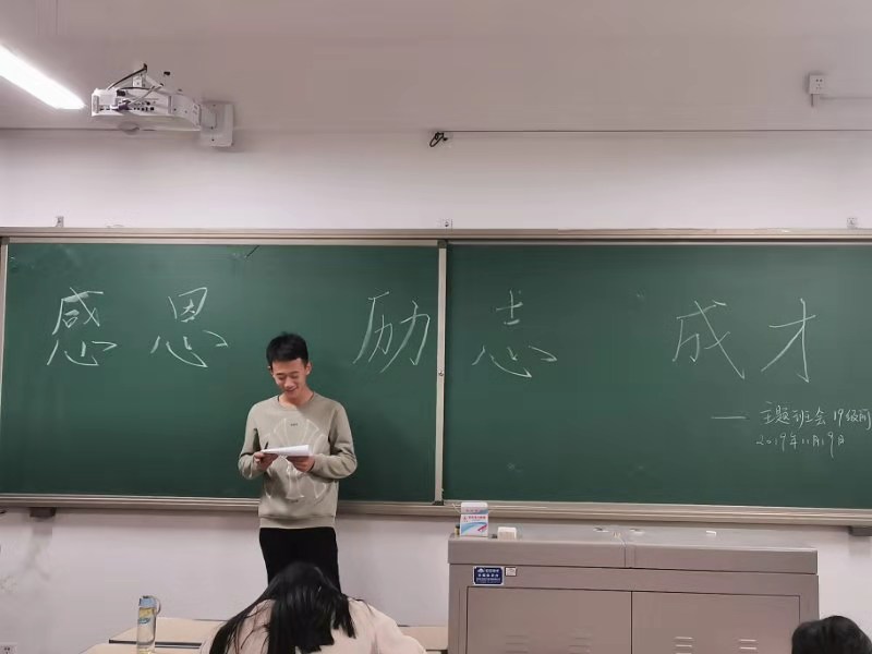 组织各班级在工科楼六楼开展“感恩 励志 成才””主题班会,2018级与2019级全体同学参加,团支书主持本次班会。