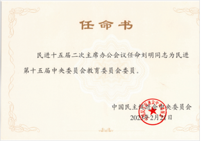 【宁夏大学黄金捕鱼场 - 黄金捕鱼场现金版讯 党委统战部】近日,民进第十五届中央委员会召开第二次主席办公会议,审议通过了民进第十五届中央委员会专门委员会委员名单,我校刘明教授被任命为民进第十五届中央委员会教育委员会委员,金忠杰教授被任命为民进第十五届中央委员会联络委员会委员,任期自2023年3月至2027年12月,并颁发了中国民主促进会中央委员会任命书。