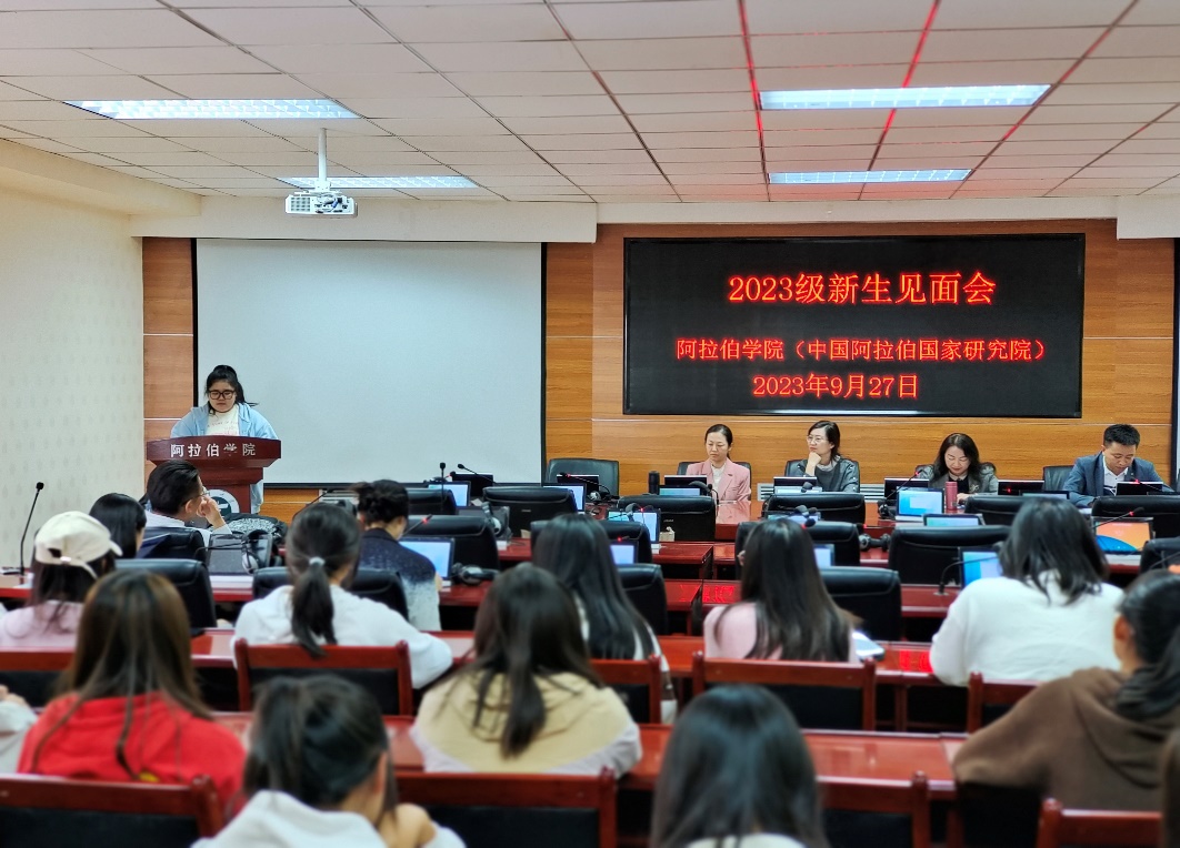 (中国阿拉伯国家研究院)召开2023级新生见面会。出席本次见面会的有学院党总支书记冯璐璐、副院长白楠以及全体在校教职工,大会由副书记、副院长冯燚主持。