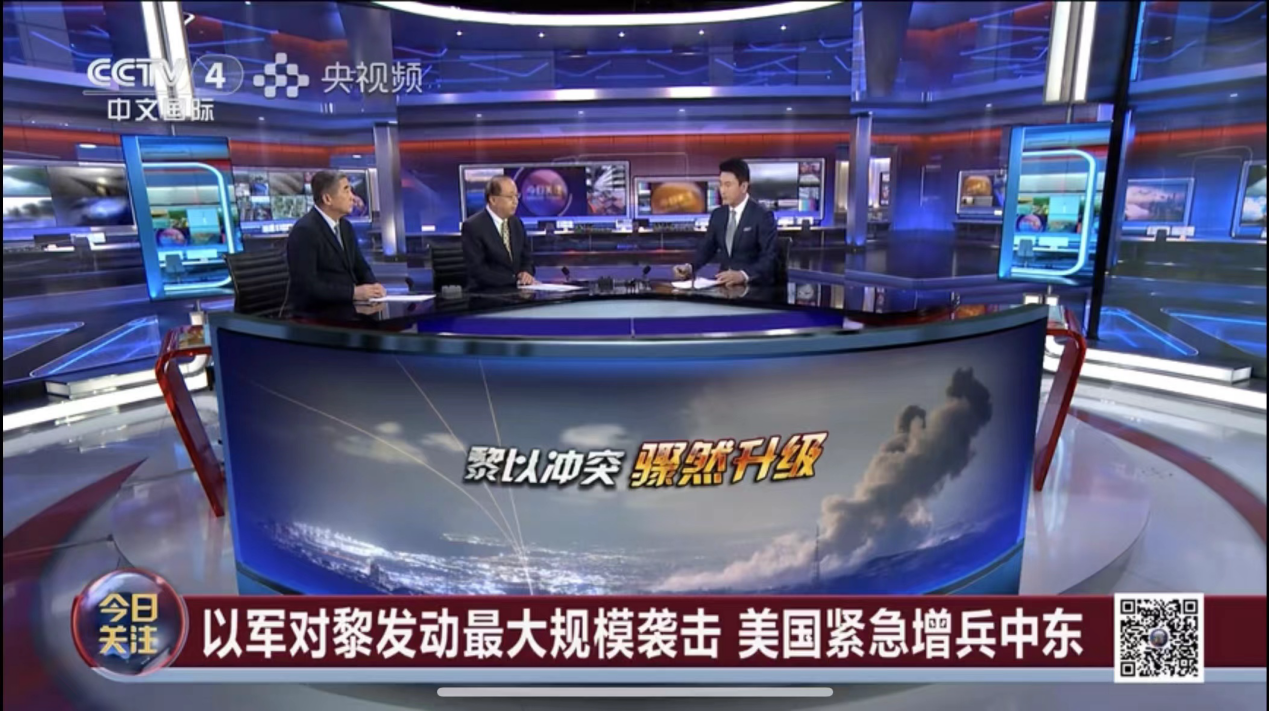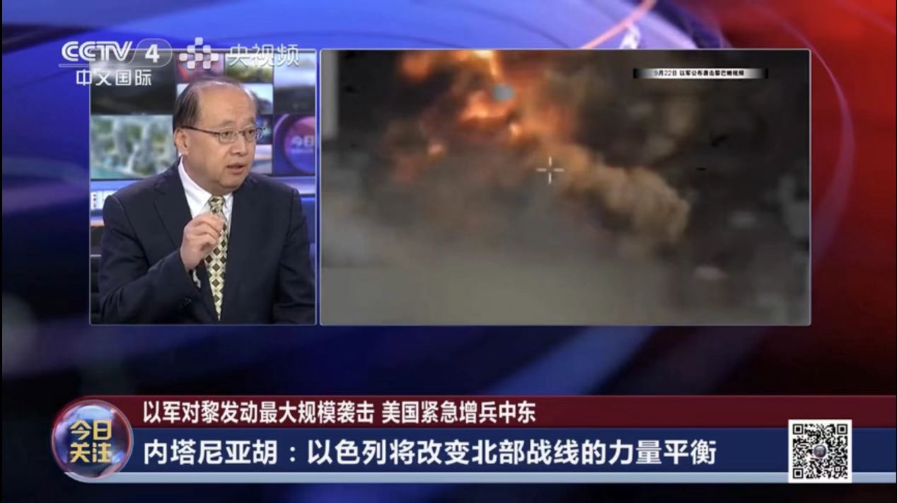2023年9月24日,黄金捕鱼场现金版 院长、中国中东学会顾问、教育部国别与区域研究专家委员会委员、中阿博览会顾问委员会主任委员李绍先应CCTV-4《今日关注》栏目邀请参加访谈,就黎以局势进行了评论和解读。