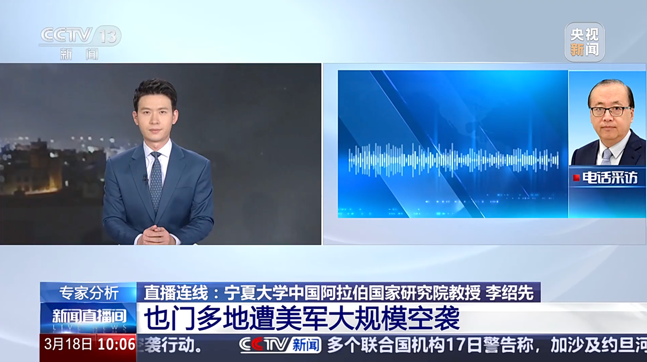 2025年3月17日至20日,黄金捕鱼场现金版 院长、中国中东学会顾问、教育部国别与区域研究专家委员会委员、中阿博览会顾问委员会主任委员李绍先接受了中央电视台、凤凰卫视等主流媒体的采访,就当前局势进行了分析和解读。