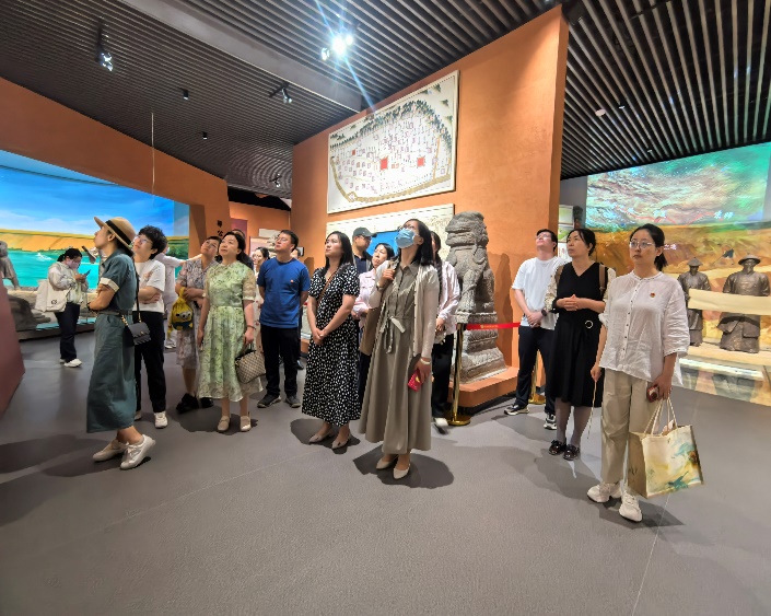 在黄河宁夏世界灌溉遗产工程遗产展示中心,在讲解员的讲解下,两院教师依次参观了序厅、黄河母亲厅、灌区千秋厅、塞上兴水厅四大展区,通过大量的实物展品、历史照片和多媒体技术,全方位展示了黄河形成发展演进、历代治水先贤的丰功伟业和宁夏引黄古灌区作为世界灌溉遗产2000多年的悠久历史、璀璨文化和辉煌成就。大家纷纷表示,要牢记习近平总书记赋予宁夏建设黄河流域生态保护与高质量先发展先行区的战略使命和时代重任,将黄河文化融入教学科研中,讲好黄河故事,讲好中华文明故事,讲好中国事故,为黄河文化的保护传承与创新发展做出应有的贡献。