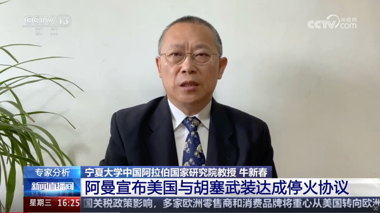 2025年5月7日至2025年5月12日,宁夏大学学术副校长、中国阿拉伯国家研究院执行院长,中国中东学会副会长、中国人民外交学会理事牛新春教授接受了中央电视台、中央广播电台等主流媒体的采访和访谈,就当前局势及趋势进行了分析和解读。