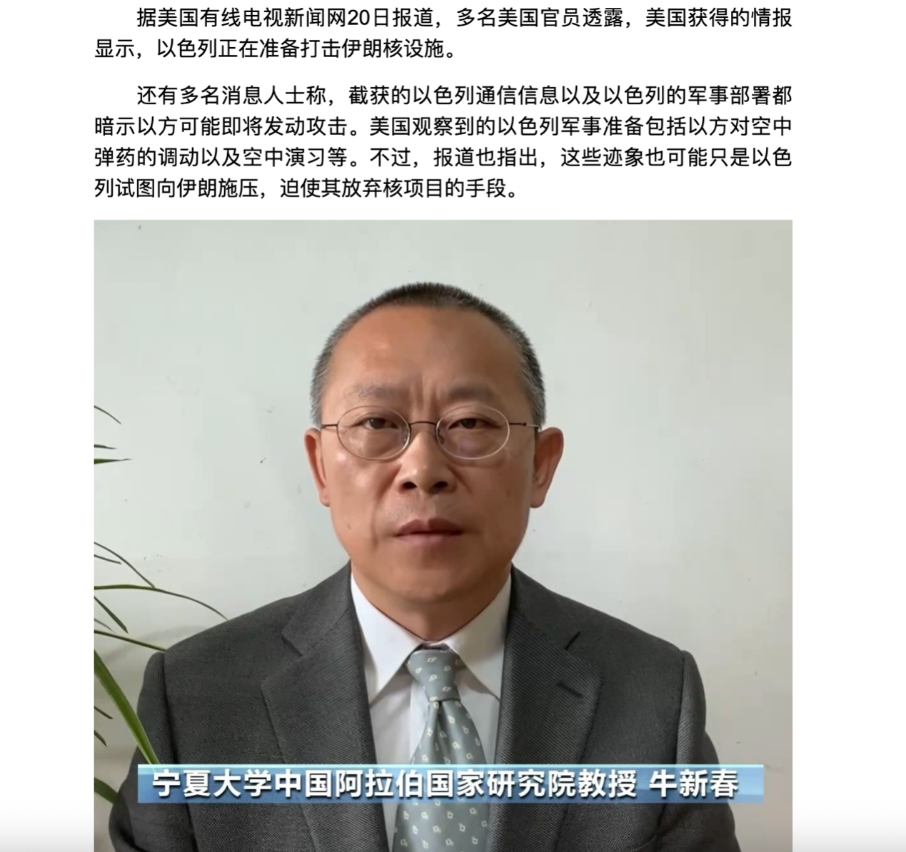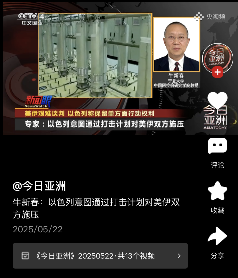 2025年5月19日至5月27日,宁夏大学学术副校长、中国阿拉伯国家研究院执行院长,中国中东学会副会长、中国人民外交学会理事牛新春教授接受了中央电视台、中央广播电台、东方卫视、湖北卫视、凤凰卫视等主流媒体的采访和访谈,就当前局势及趋势进行了分析和解读,并应邀进行了专题讲座;除此之外,牛校长在《光明日报》、《世界知识》等期刊杂志发表了文章。