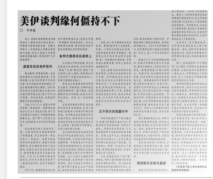 三、5月20日在光明日报发表题为《美伊谈判缘何僵持不下》文章