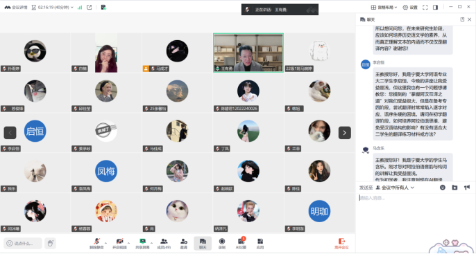 在互动交流环节中,王有勇教授针对学生们提出的阿拉伯语文献阅读、翻译实践及人工智能对翻译行业影响等问题,逐一进行了细致解答,并结合实际情况给出了具体的学习建议。同学们一致表示,讲座内容深入浅出、贴近实际,对今后的专业学习具有重要指导作用,进一步增强了大家学好阿拉伯语的信心与热情。