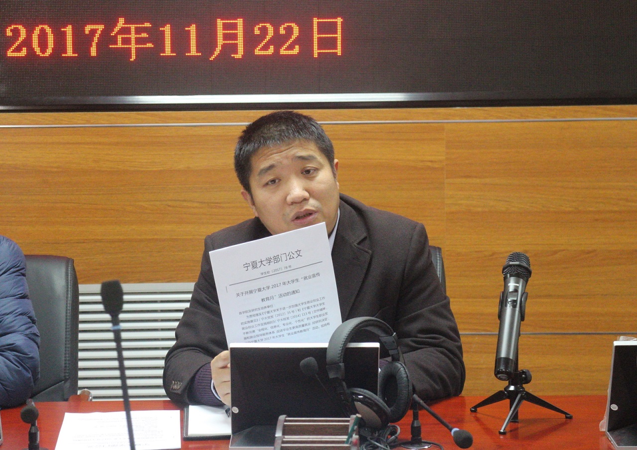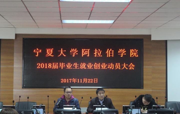 在学院报告厅召开2018届毕业生就业创业动员大会。学院党总支副书记赵永军、学生工作办公室金宁洋老师与全体2018届毕业生参加会议。学生工作办公室主任马生忠主持会议。