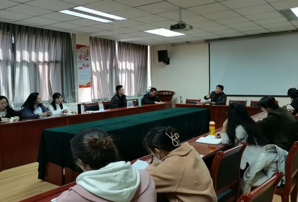 于知行楼八楼会议室召开2022年春季学期研究生工作部署大会,学院党总支副书记赵永军、学院硕士研究生导师金忠杰、白楠、周丽娅、冯燚以及全体研究生参加了此次会议。会议由田媛老师主持。