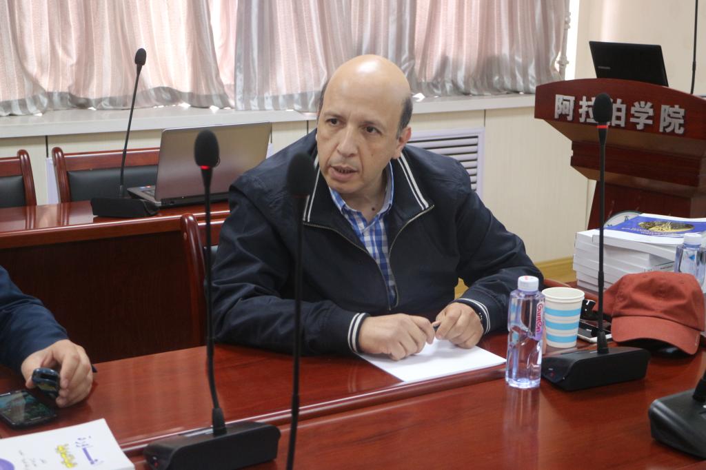 4月17日,代表团一行与黄金捕鱼场现金版 教师开展了座谈会。双方回顾了两校联合培养项目的开展,围绕着教材的编写和阿拉伯语的教学进行了深入的探讨和交流。在具体的合作事宜上,两方达成了意向性合作共识,黄金捕鱼场现金版 老师就现实教学中存在的问题与代表团交换了意见。