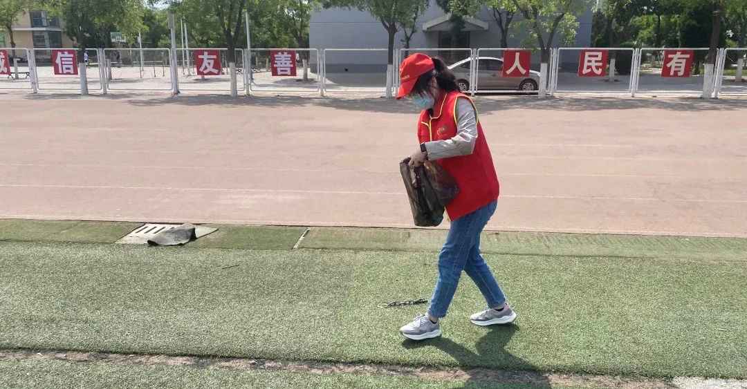 活动中,志愿者们身穿红色马甲,手拿垃圾袋,认真搜寻操场上的垃圾,他们不放过每个角落,并对收集的垃圾进行了集中处理,充分发挥了“不怕苦,不怕累”的雷锋精神。经过志愿者们一个多小时的辛勤劳动,操场的环境焕然一新,志愿者们也在劳动中进一步诠释了无私奉献的精神。