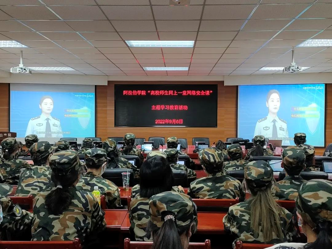 在知行楼八楼报告厅开展“高校师生同上一堂”网络安全课主题学习教育活动。22级全体学生与会。