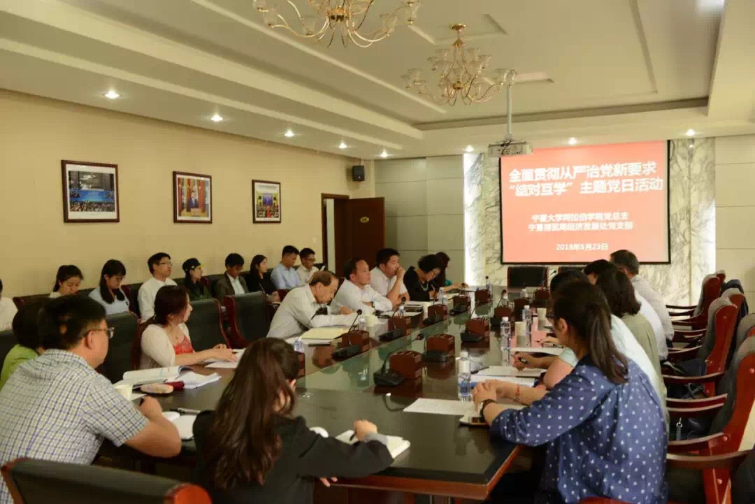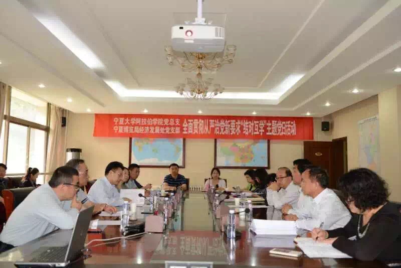 党总支与宁夏博览局经济发展处党支部在中国阿拉伯国家研究院一楼会议室共同开展了“全面贯彻从严治党新要求”结对互学主题党日活动。
